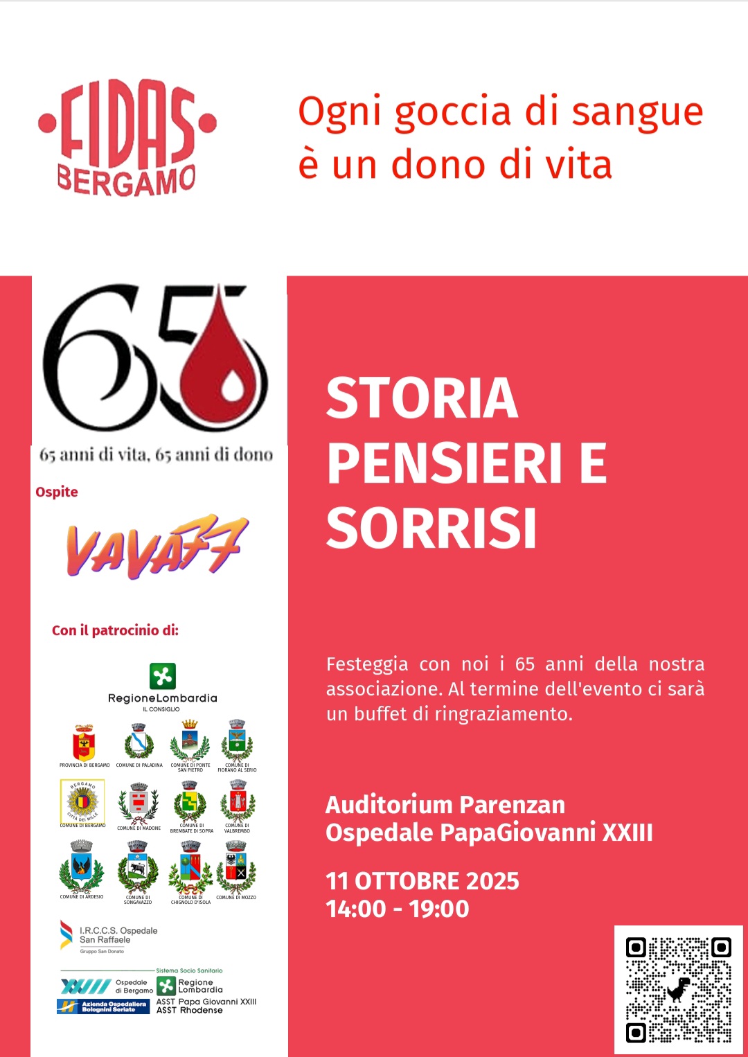 Festeggia con noi i 65 anni dell'associazione FIDAS. Al termine dell'evento ci sarà un buffet di ringraziamento. Ospite: Vava77